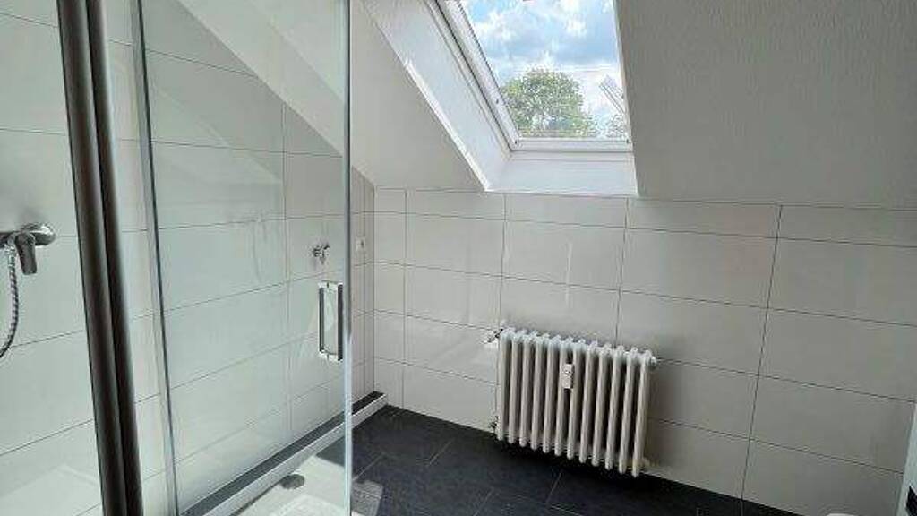 Über das sehr gepflegte Treppenhaus des Hauses gelangen Sie in das Dachgeschoss. Sie betreten die Wohnung und befinden sich in einer recht geräumigen Eingangsdiele. Von hier aus erreichen Sie alle Räume des Appartements. Die Küche hat ausreichend Platz für eine Küchenzeile. Die hier gezeigte Zeile kann vom Vormieter übernommen werden. Preis VB. Der sehr große und helle Wohn- und Schlafbereich hat ebenfalls genügend Platz für eine Wohnlandschaft und für den Schlafbereich. Die großen und hellen Fenster lassen viel Licht in den Raum fließen. Ein praktischer Einbauschrank rundet das Wohnangebot ab. Das moderne Badezimmer verfügt über eine Dusche mit Glasabtrennung, WC, Waschbecken und über ein Fenster. Das Duschbad ist komplett im Jahre 2023 neu gefliest und ausgestattet worden. In der Diele bietet die praktische Abstellkammer genügend Stauraum. Das Appartement ist im Jahr 2023 gänzlich umfassend saniert und renoviert worden. Das Appartement eignet sich sehr gut für eine solvente und berufstätige Einzelperson. Eine Tierhaltung ist nicht gerne gewünscht.