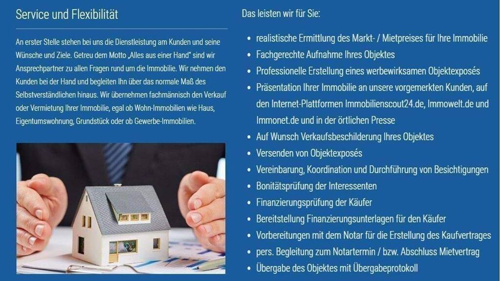 - Präsentation Ihrer Immobilie an unsere vorgemerkten Kunden und in der örtlichen Presse