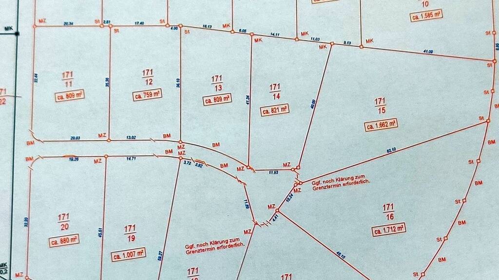 Es werden 16 Parzellen in verschiedenen Größen angeboten, bereits voll erschlossen und vermessen.