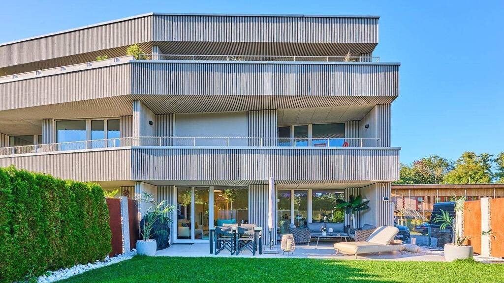 Schon vom ersten Anblick kommt man bei dieser Wohnung in der Wohnlage Lagom gar nicht aus dem Staunen. Die mit Holzlatten versehen Aussenwände der Häuser im elegantesten Design vom Architekturbüro Lynx sind unverkennbar. Alles ist vom Feinsten: geschmackvoll und elegant präsentieren sich alle Wohnräume. Der grosse Südgarten mit den edlen Deko- und Lichtelementen ist die Krönung.