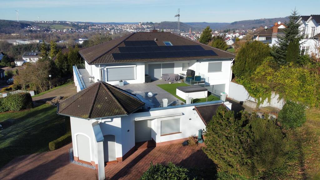 Die luxuriöse Immobilie mit Parkanlage befindet sich auf einer Anhöhe in idyllischer Lage von Schmelz.