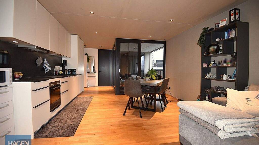 Highlights: - Heizung: Deckenheizung und -kühlung, Wärmepumpe - Hochwertige Einbauküche (Bora-Kochfeld, Dunstabzug mit Aktivkohlefilter, etc.) - Raumhohe Türen und Fenster - Echtholzparkettboden (Eiche, matt lackiert) - Elektrische Jalousien - Dimmbare Spots - Teilweise Sichtbetonwände