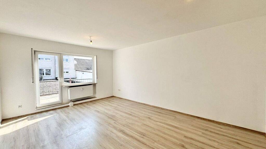 Linker Hand befindet sich die separate Küche, die ausreichend Platz für eine funktionale Einbauküche bietet. Angrenzend liegt das großzügige Wohnzimmer. Der Raum bietet genügend Platz für eine Wohnlandschaft sowie einen Essbereich. Vom Wohnzimmer aus gelangen Sie direkt auf den großen Balkon, der zusätzlichen Platz im Freien bietet und sich ideal für entspannte Stunden oder einen kleinen Sitzbereich eignet.
