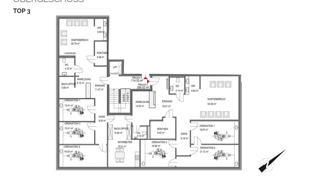 Dank der großzügigen Fensterflächen wird die Praxisfläche mit ausreichend Tageslicht durchflutet, was nicht nur für eine angenehme Arbeitsatmosphäre sorgt, sondern auch Ihren Kunden oder Patienten ein Gefühl von Offenheit und Transparenz vermittelt.