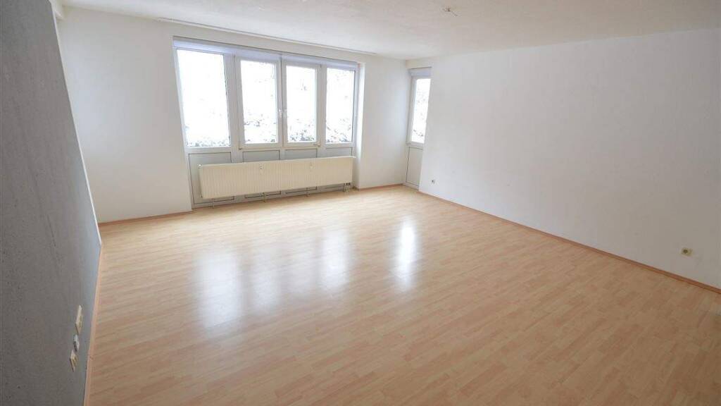 Nach der Eingangstür betreten Sie den zentralen und geräumigen Flur mit Zugang zu allen Räumen. Somit wäre diese Wohnung auch perfekt WG-geeignet. Gegenüber der Eingangstüre liegt der Wohnbereich mit der offenen Küche. Diese ist mit einer modernen Einbauküche mit einem 4-Plattenherd mit Backofen, einen Dunstabzug, eine Edelstahlspüle und einen Kühlschrank mit Gefrierfach ausgestattet. Die Ausstattung ist modern und zeitlos und durch die großen Fensterflächen ist dieser Raum besonders hell. Das Schlafzimmer ist quadratisch geschnitten und bietet viel Platz für einen großzügigen Schrank. Auch hier große Fensterflächen. Ganz links ist das Bad angeordnet. Hier erwartet Sie mit hellen Fliesen und weißer Sanitärkeramik (WC, Badewanne und Waschbecken) eine zeitlose Optik.