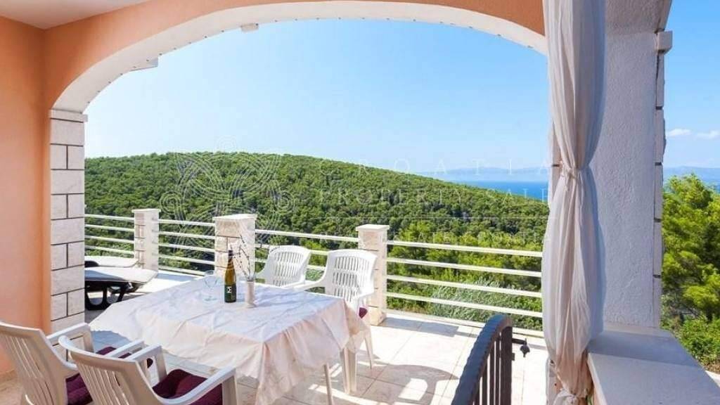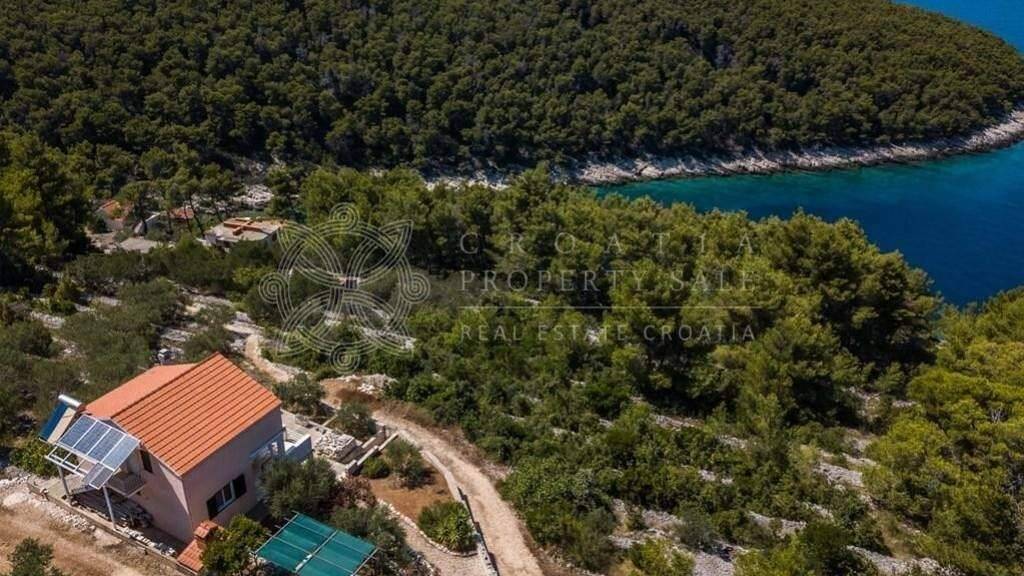This Croatia Korcula island house by the sea for sale is located just 120 meters from the sea and offers a panoramic west-facing sea view. The location is peaceful and secluded, surrounded by pine woods and olive groves. Currently, the property does not have access to city water or electricity, but these services are planned for connection within the next year. In the meantime, the house is equipped with solar panels and a battery system to power appliances, and a water tank that provides drinking water through rainwater collection or by purchasing and delivering water via trucks. The cost of this water is comparable to that of city water. A septic tank is in place for waste water.The house offers approximately 150 m of living space, with parking for two cars, an outdoor grilling fireplace, a storage room for the solar systems engine, and another larger storage space beneath the main terrace. The first floor features an apartment with two bedrooms, a bathroom with a bath and shower, an open-plan kitchen and living area, and a large terrace with a panoramic sea view. The upper floor consists of another apartment with two bedrooms (one of which requires flooring), a bathroom, a living room with a kitchen and dining area, and a balcony. The house is set on a 300 sq.m. land plot. As the area is still undeveloped, there are only a few houses nearby. The access road is a white macadam road, and the shoreline is rocky and steep. However, there is easy access to the sea via a bay, located just 150 meters from the house, with a pier suitable for small boats. Price for Croatia Korcula island house by the sea for sale is 330000 EUR.