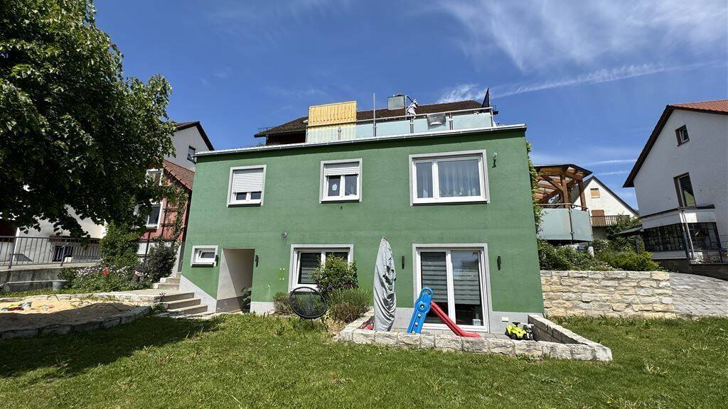 Dieses kernsanierte 4-Familienhaus befindet sich in einer ruhigen und dennoch zentralen Lage in Feuchtwangen. Das im Jahr 1959 erbaute Gebäude wurde ab 2012 saniert und im Jahr 2017 durch einen Anbau im Keller und Erdgeschoss erweitert. Der Vollwärmeschutz an der Westseite wurde im Jahr 2012 angebracht, um die Energieeffizienz zu verbessern. Das Haus verfügt über eine Öl-Zentralheizung mit einem 3.000-Liter-Tank von 1997. Die Elektrik wurde im Jahr 2012 erneuert, ebenso einige Leitungen, während das Dach 2012 isoliert wurde.