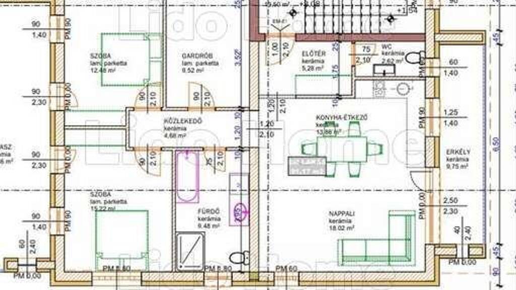 Der schlüsselfertige Preis beinhaltet Fliesen bis zu einem Bruttopreis von 7000 HUF/m² und Bodenbeläge bis zu einem Bruttopreis von 5000 HUF/m².