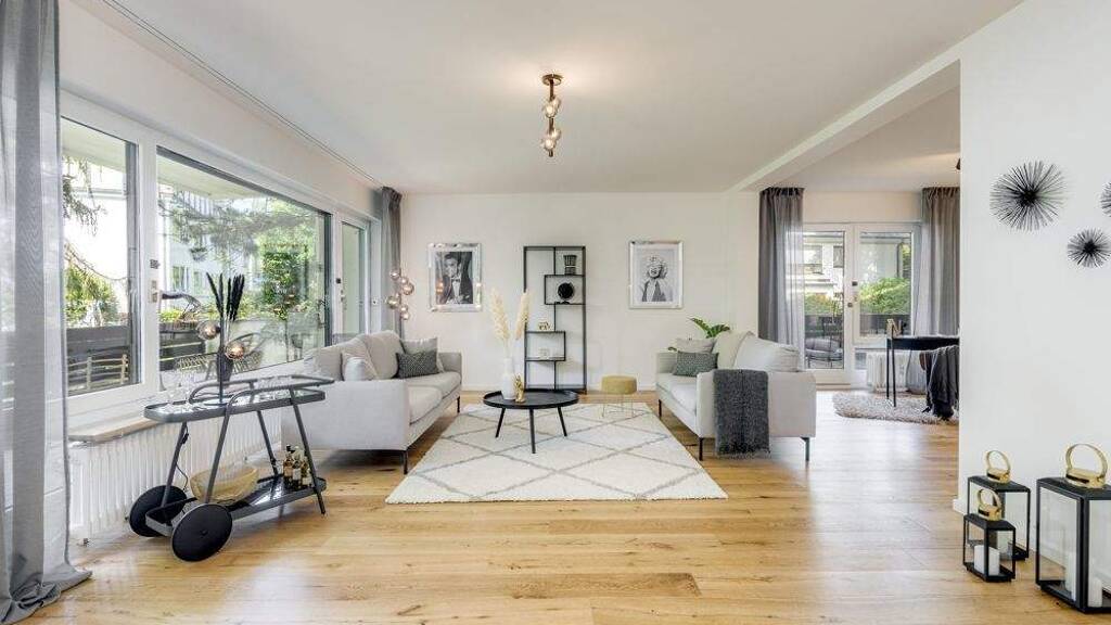 Der Malerwinkel ist eine der exklusivsten Wohnlagen von München-ruhig ,grün und dennoch hervorragend angebunden. Diese geschmackvolle 3-Zimmer-Parterrewohnung bietet auf einer Wohnfläche von ca. 120 m² sowie einen eingewachsenen Garten, der als Sondernutzungsrecht ausgewiesen ist, die perfekte Symbiose aus gehobenen Wohnniveau und höchstem Anspruch an Lebens- und Lagequalität im Münchner Stadtteil Alt-Solln. Bereits beim Betreten der Wohnung empfängt Sie ein großzügiges Entree mit separiertem Garderobenbereich und Zugang zum Abstellraum. Der geräumige und lichtdurchflutete Wohnbereich stellt das Herzstück dieser Immobilie dar und öffnet sich hin zum Wohn-Essbereich sowie zum angrenzenden Büro. Große Fensterfronten bringen viel Licht in die Räume und schaffen somit eine angenehme und behagliche Wohnatmosphäre. Der großzügige Süd-/ Westbalkon ist zum eingewachsenem Garten hin ausgerichtet und bietet viel Platz für Ruhe und Gemeinsamkeit. Von hier aus gelangen Sie über wenige Stufen direkt in den Garten. Weiterhin verfügt auch das Schlafzimmer über einen eigenen Balkon der Ihnen Freiheit für ungestörtes Lesen, Musik hören oder ein ruhiges Gespräch bietet. Das Badezimmer sowie das WC verfügen über eine moderne und besondere Ausstattung die keine Wünsche offen lässt. Die Wohnung befindet sich in einem soliden Mehrfamilienhaus aus dem Jahre 1969. Bei der Renovierung wurde ein besonderes Augenmerk auf die Qualität der Materialien gelegt. Zum Objekt gehört ein großzügiger Tiefgaragenstellplatz (Überbreite) sowie ein praktisches Kellerabteil.