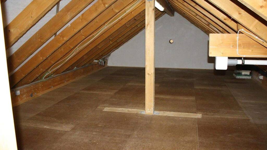Der Dachboden ist über eine ausziehbare Treppe erreichbar und komfortabel begehbar.