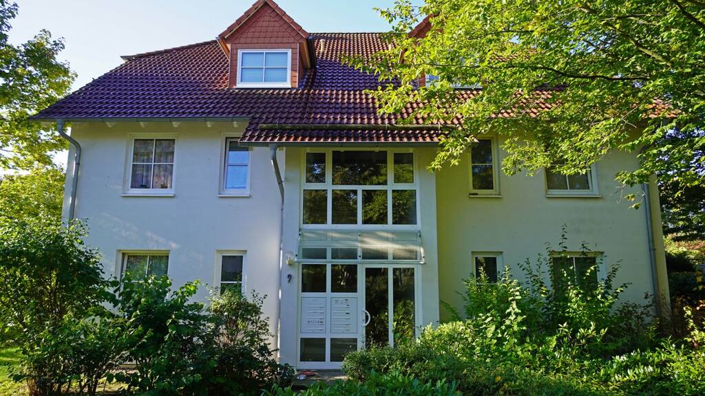 Zum Verkauf steht eine freie, gut geschnittene Eigentumswohnung in der belle étage, dem 1. Obergeschoss eines 1995 neu errichteten, gepflegten Mehrfamilienhauses mit 10 Wohneinheiten. Das Haus ist Teil der Eigentümergemeinschaft "Landgut Weimar" im Weimarer Ortsteil Legefeld und besteht aus insgesamt 27 Häusern.