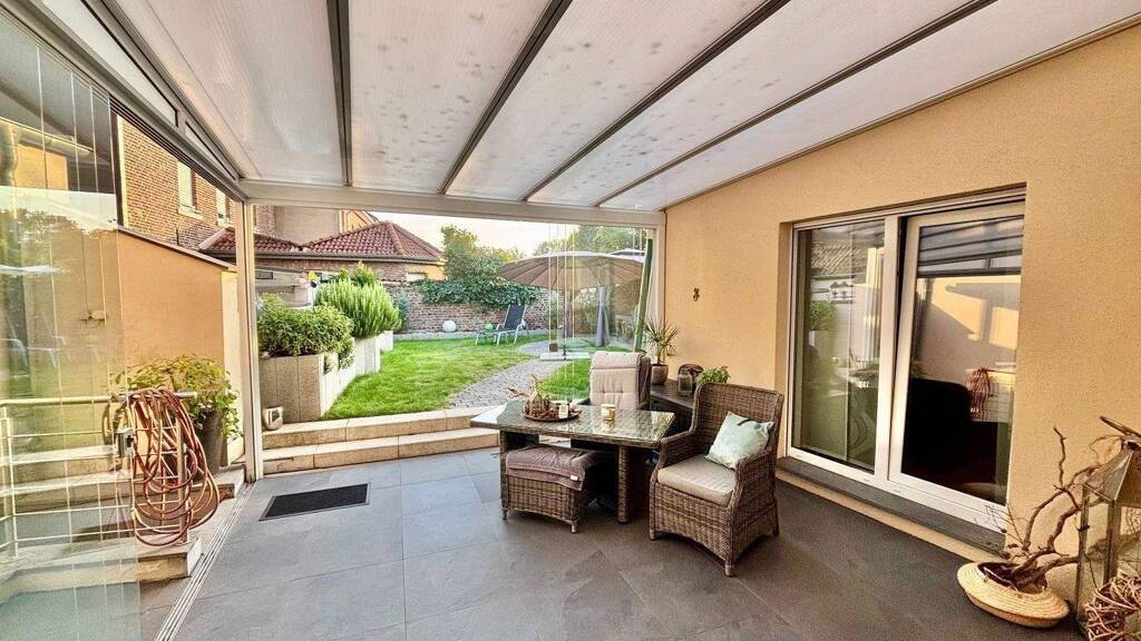 Highlight ist der geschlossene WIntergarten, der sich öffnen lässt und in den eigenen Garten führt.