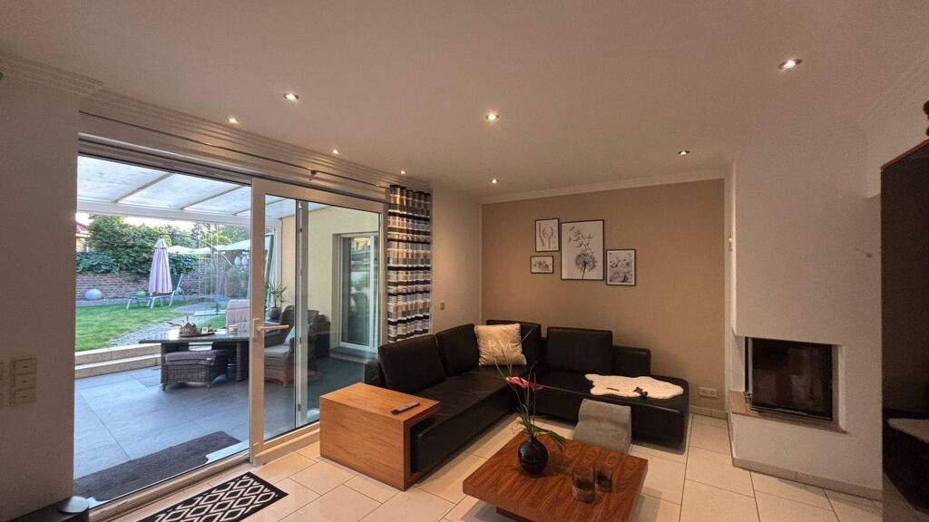 - Eingangsbereich mit Garderobenbereich - Kinderzimmer - Schlafzimmer mit Bad en Suite & hochwertiges Tageslichtbad mit Wanne - Wohnzimmer mit Kamin und Ausgang zum Wintergarten / Garten - Essbereich mit offener Einbauküche - weiteres Kinderzimmer bzw. Gästezimmer - Bad mit Dusche