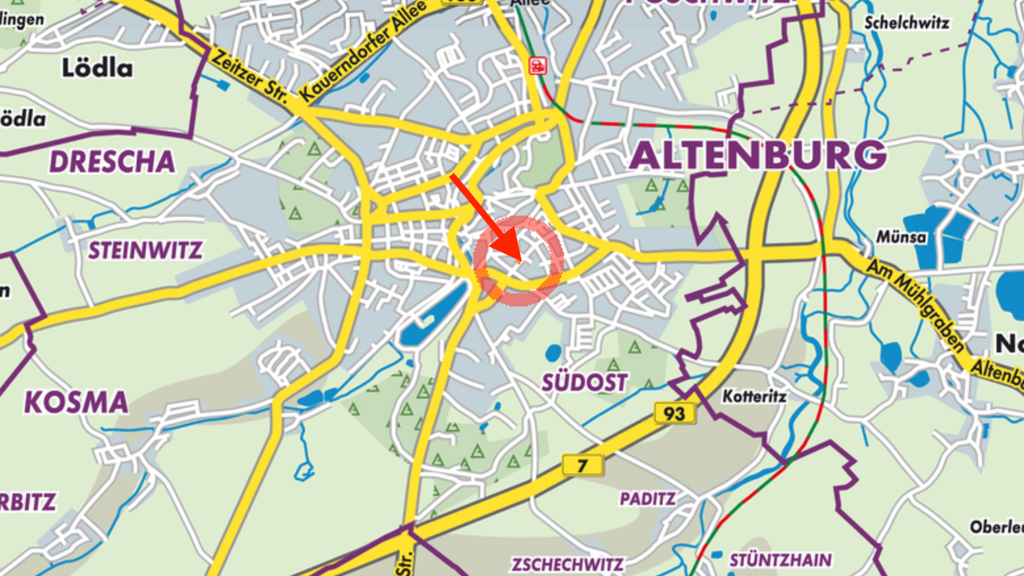 Die Mietwohnung liegt in der Wielandstraße 19 in Altenburg, in einer ruhigen und gewachsenen Wohngegend . Das Umfeld ist geprägt von gepflegter Wohnbebauung und einer angenehmen Nachbarschaft. Einkaufsmöglichkeiten, Ärzte, Schulen und Kindergärten sind in kurzer Zeit erreichbar. Die Altenburger Innenstadt befindet sich nur wenige Minuten entfernt und bietet ein vielfältiges Angebot an Geschäften und Dienstleistungen. Eine gute Anbindung an den öffentlichen Personennahverkehr sorgt für eine bequeme Erreichbarkeit weiterer Stadtteile. Auch der Bahnhof Altenburg ist schnell erreichbar. Grün- und Erholungsflächen in der Umgebung laden zu Spaziergängen und Freizeitaktivitäten ein. Insgesamt vereint die Lage ruhiges Wohnen mit einer guten städtischen Infrastruktur.