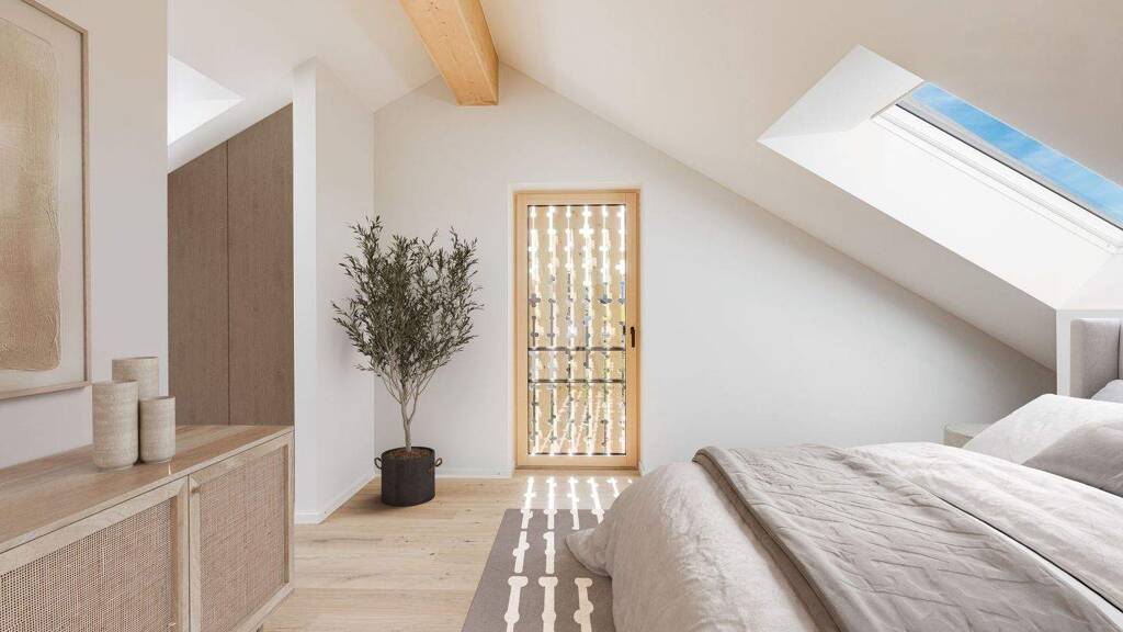 Mit einer Wohnfläche von ca. 130 m² ist dieses Haus das größte des Vierspänners. Das Erdgeschoss besitzt wunderbare Glasfronten nach Süden und Westen. Hier sind neben einer Diele mit Gäste-WC und Garderobennische ein sonnendurchfluteter Wohn-/Essbereich mit offener Küche untergebracht. Ergänzt wird das Erdgeschoss durch eine teilüberdachte West-Terrasse und eine Süd-Terrasse sowie einem ca. 65 m² großen Garten, der zu Entspannung und Spiel im Freien einlädt. Im Obergeschoss befinden sich zwei sehr attraktive Räume, die sich ideal als Kinder- bzw. Arbeits-/Gästezimmer anbieten. Einer der Räume wird durch einen Balkon mit Westausrichtung erweitert; der andere Raum besitzt ein Südfenster mit Bergblick. Hinzu kommt ein Bad mit Wanne, Dusche, Waschbecken, WC und Fenster. Das Dachgeschoss begeistert durch luftiges Studio-Flair, eröffnet herrliche Ausblicke und bietet sich als Masteretage an. Neben einem Schlafzimmer gibt es hier einen flexibel als Ankleide oder Arbeitszimmer nutzbaren Raum sowie ein lichtdurchflutetes Duschbad. Im Untergeschoss stehen Hobby-, Hauswirtschafts- und Abstellflächen zur Verfügung. Komplettiert wird dieses reizvolle Domizil durch zwei Tiefgaragen-Stellplätze mit Vorrüstung für E-Mobilität.
