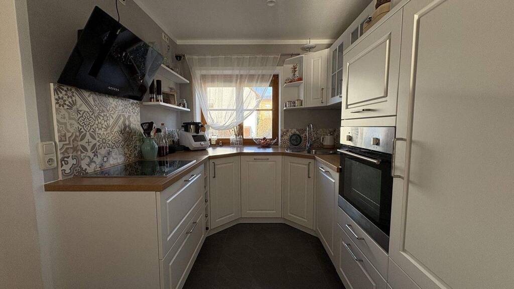 Der Mittelpunkt des Hauses befindet sich im Erdgeschoss: Eine offen gestaltete Küche verbindet sich harmonisch mit dem Wohn- und Essbereich und schafft einen modernen, kommunikativen Wohnraum. Die Küche sowie die Bodenbeläge wurden im Rahmen der letzten Renovierung im Jahr 2022 erneuert. Ergänzt wird diese Ebene durch ein Gäste-WC. Vom Wohnzimmer aus gelangen Sie direkt auf die Terrasse und in den Garten - ideal zum Entspannen, Spielen oder für gesellige Abende im Freien.