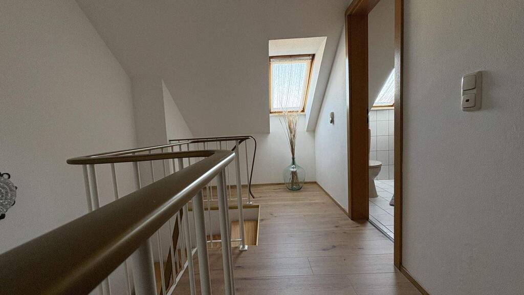 Das ausgebaute Dachgeschoss erweitert das Raumangebot deutlich: Zwei Zimmer, ein kleines Duschbad sowie eine Einbauküche ermöglichen hier vielfältige Nutzungsmöglichkeiten - etwa als separater Bereich für Jugendliche, Gäste oder als Homeoffice-Etage mit eigener Infrastruktur.