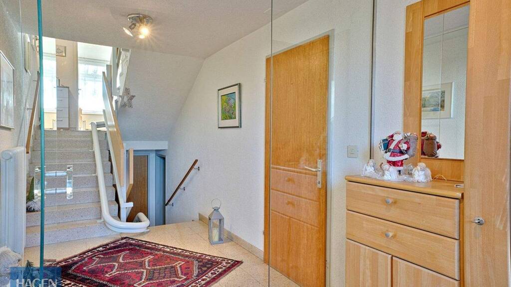 Praktischer Komfort ist ebenfalls gegeben: Eine Garage im Haus sorgt für bequeme Parkmöglichkeiten, ergänzt durch zahlreiche Allgemeine Außenstellplätze sind Parkmöglichkeiten auch für Besucher gegeben. Zusätzlich stehen geräumige Kellerräume zur Verfügung, die Platz für Hobby, Vorräte oder Stauraum bieten.