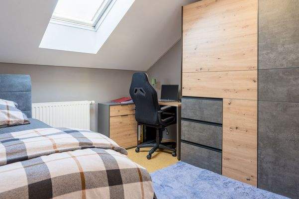 Es besteht aus Kellergeschoss, Erdgeschoss und Obergeschoss (= Dachgeschoss).