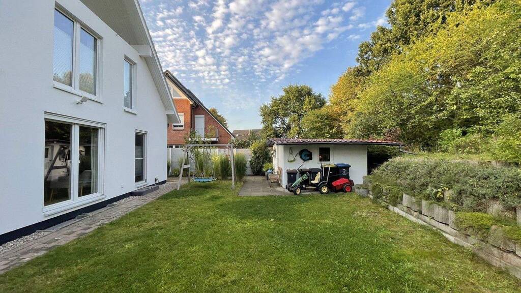 Der pflegeleicht angelegte Garten besticht durch viel Privatsphäre und ein sehr geräumiges 20 m²Gartenhaus. Mehrere Obstbäume (Apfel, Mirabelle, Pflaume, Kirsche, Birne, Walnuss) verleihen dem Grundstück einen besonderen Charme.