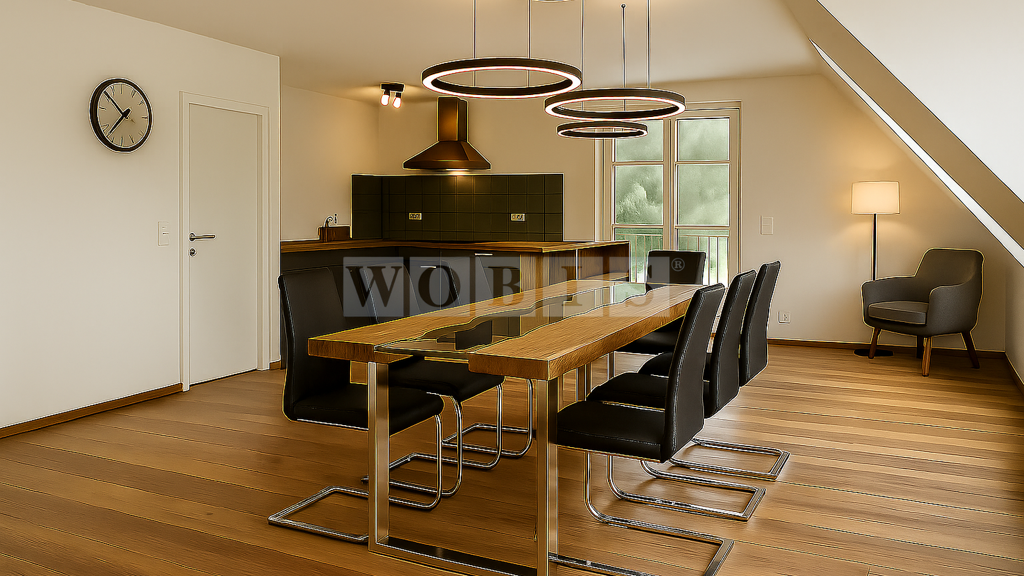 Die mit „KI“ gekennzeichneten Bilder zeigen unverbindliche Einrichtungsideen und dienen als Inspiration zur individuellen Gestaltung der Räume. Sie wurden digital erstellt und stellen keine Darstellung des tatsächlichen Zustands dar. Möblierung, Ausstattung und Dekoration sind beispielhaft und nicht Bestandteil des Angebots.