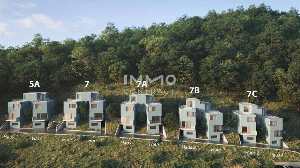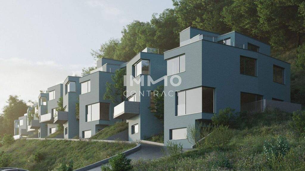 Das Projekt umfasst insgesamt zehn moderne Doppelhaushälften, die durch ein klar gegliedertes Wohnkonzept und großzügige Freiflächen überzeugen. Balkone und Terrassen schaffen wertvolle Rückzugsorte im Freien und unterstreichen den offenen, lichtdurchfluteten Charakter der Häuser. Die harmonische Architektur fügt sich dabei elegant in die Hanglage ein und eröffnet attraktive Ausblicke Richtung Donau.