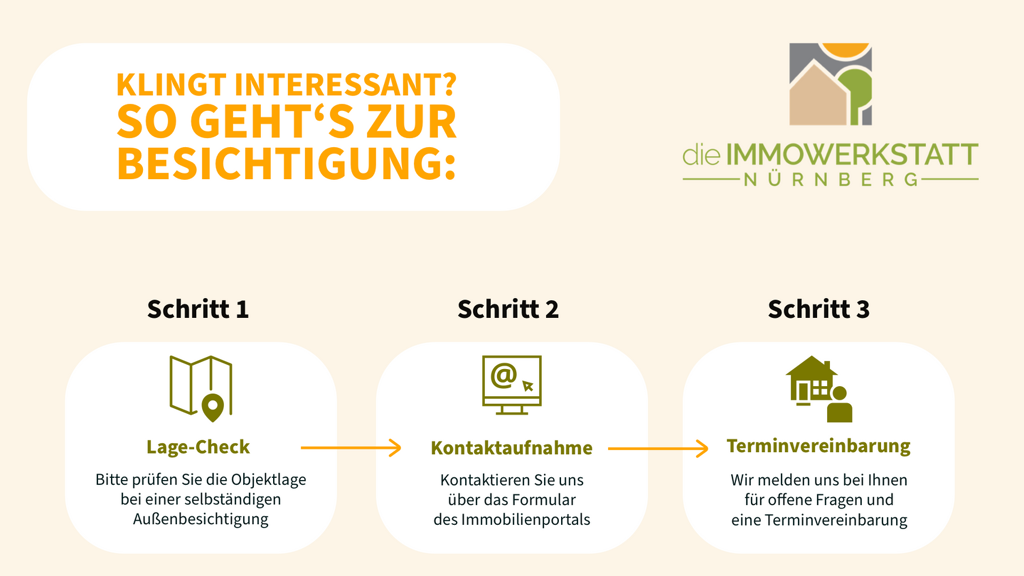 Lassen Sie sich bei einer Besichtigung von dieser charmanten Immobilie begeistern und vereinbaren Sie mit uns einen Besichtigungstermin. Ihr neues Zuhause und die IMMOWERKSTATT NÜRNBERG freuen sich auf Sie!