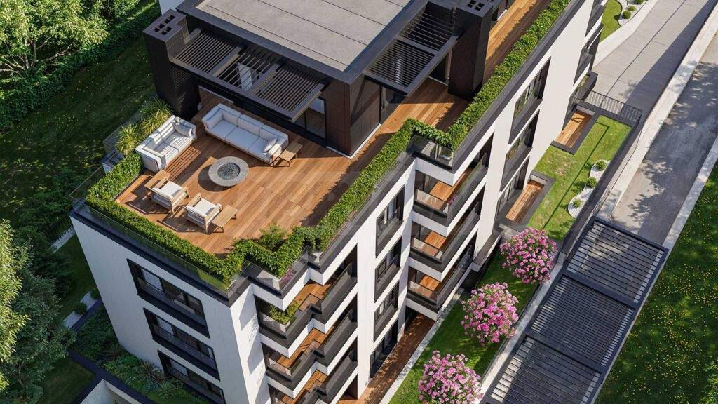 Das Gebäudekonzept umfasst moderne Architektur, eine geringe Anzahl praktischer Wohnungen, hohe Energieeffizienz und technologische Lösungen, die auf Komfort, Nachhaltigkeit und niedrige Betriebskosten abzielen.