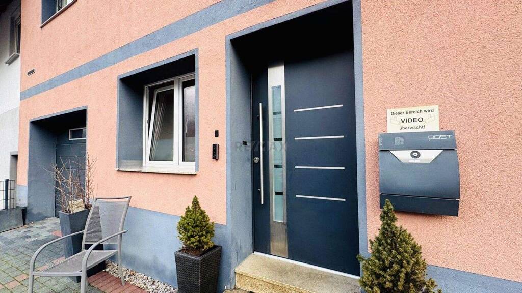 Die Fassade erstrahlt im frischen Anstrich, die Haustüre wurde neu eingebaut und das Garagentor modernisiert.