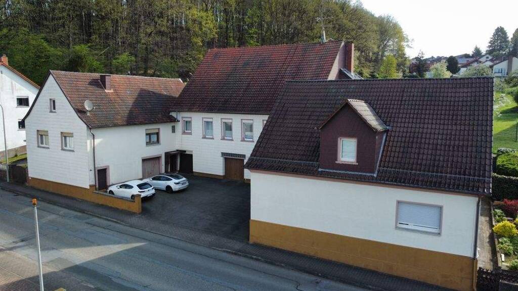 Dieses vielseitige Gebäudeensemble in Kottweiler-Schwanden bietet auf einem ca. 2.809 m² großen Eigentumsgrundstück eine seltene Gelegenheit für Kapitalanleger, große Familien, Mehrgenerationenwohnen oder eine Teileigennutzung/Vermietung. Die Immobilie umfasst drei separate Wohnhäuser mit einer Gesamtwohnfläche von ca. 530 m². Das linke Haus bietet ca. 122,5 m² Wohnfläche und wurde 1963 von einer Scheune zum Wohnhaus umgebaut und seither teilsaniert; so wurden 1997 die oberste Geschossdecke gedämmt und 2012 eine neue Hauseingangstür, ein neues Bad sowie eine neue Gas-Zentralheizung eingebaut. Das mittlere Haus verfügt über ca. 157,6 m² Wohnfläche. Hier wurde ebenfalls 1997 die oberste Geschossdecke gedämmt und die Hoffassade erneuert, 2005 das Bad saniert und 2010 eine neue Gas-Zentralheizung installiert. Das rechte Haus ist mit ca. 249,7 m² die größte Einheit und wird über eine Öl-Zentralheizung aus dem Jahr 1993 beheizt. Alle drei Einheiten stehen aktuell leer und bieten Ihnen somit maximale Flexibilität für eine sofortige Eigennutzung, Neuvermietung oder umfassende Sanierungsprojekte. Zum Anwesen gehören außerdem zwei Garagen und weitere Pkw-Stellplätze im Hof. Ein besonderes Highlight ist das große Grundstück, welches nach §34 BauGB bebaubar ist und zusätzliches Entwicklungspotenzial birgt.