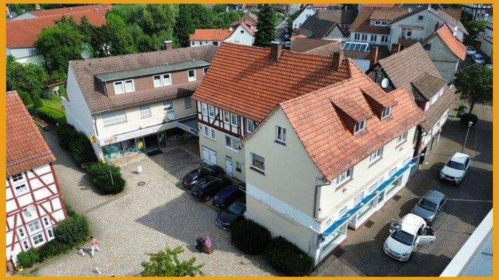 Dieses in Teilen ursprünglich um 1900 erbaute und in 1972 massiv erweiterte Wohn- und Gewerbeobjekt bietet Ihnen heute eine Wohn- und Gewerbefläche von rund 756 m² zzgl. Keller und Nebenräume. Der aktuell freie Ladenbereich im Erdgeschoss verfügt über rund 190 m² Fläche. Zusätzlich stehen Abstellräume und ein WC zur Verfügung sowie ein direkter Zugang in den Garten. Über dem Laden auf ca. 140 m² ist eine großzügige ehemalige Betreiber-Wohnung mit drei Schlafzimmern, einem Wohnzimmer, einer Küche mit Speisekammer, einem Bad mit Wanne und Dusche, einem separaten Gäste-WC und großem Balkon gelegen. Im darüberliegenden Dachgeschoss ist eine weitere Einheit mit rund 100 m² vorhanden, die sich in ein Wohnzimmer, zwei Schlafzimmer, eine Küche, ein Gäste-WC und ein Badezimmer mit Dusche aufteilt. Der ältere Gebäudeteil hat im Erdgeschoss eine vermietete Ladenfläche mit etwa 80 m² sowie ebenso 2 Wohneinheiten im Ober- und Dachgeschoss mit rd. 70 m² und 140 m² Fläche. Alle Wohneinheiten sind an solvente Mieter vermietet, könnten aber auch in Teilen eigengenutzt werden. Für PKWs stehen eine Garage, ein Carport und 3 Stellplätze im Hof zur Verfügung. Die Jahresnettomiete beträgt OHNE den Laden rd. 33.000,- €.