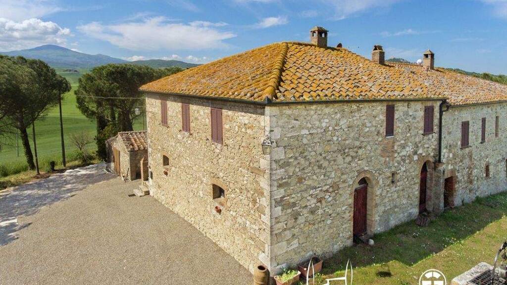 Dieses schöne Anwesen mit einer Gesamtfläche von 500 m² liegt in den sanften Hügeln des Val d'Orcia eingebettet. Das Hauptgebäude, zu dem der zu verkaufende Teil gehört, ist in zwei Einheiten unterteilt. Der Bereich ist auf zwei Ebenen wie folgt aufgebaut. Im Erdgeschoss befinden sich die Abstellräume, die in der Vergangenheit als Ställe und Keller genutzt wurden. Die erste Etage hingegen beherbergt den Wohnbereich: eine große Küche mit Kamin, ein Wohnzimmer, 4 Schlafzimmer, 2 Bäder und einen Raum, der als Abstellraum genutzt wird, aber in ein zusätzliches Zimmer umgewandelt werden könnte. Das Nebengebäude ist in mehrere Räume unterteilt und misst ca. 90 qm. Das Anwesen wird durch ein Grundstück von ca. 7800 qm ergänzt.