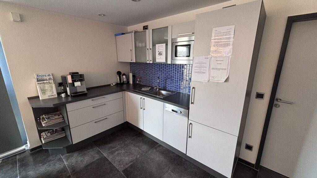 Dieses moderne Gewerbeobjekt kombiniert funktionale Lagerflächen mit komfortablen Büroräumen. Die Immobilie bietet eine geräumige Halle, einen Empfangsbereich, zwei Büroräume, eine Küche, einen Flur, einen Gemeinschaftsraum und sanitäre Anlagen.