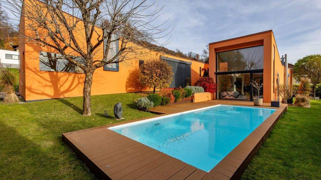 Diese außergewöhnliche Architekten-Villa im modernen ,California Style' vereint puristische Linien, lichtdurchflutete Räume und eine hochwertige Ausstattung. Die Villa mit rund 300 Quadratmetern Nutzfläche steht perfekt positioniert auf dem rund 935 Quadratmeter großen Grundstück. Aufgrund der leicht erhöhten Lage und der Positionierung in Richtung Süd-West genießt man zu jeder Jahres- und Tageszeit ideale Besonnung bei herrlichem Weitblick in die Berglandschaft.