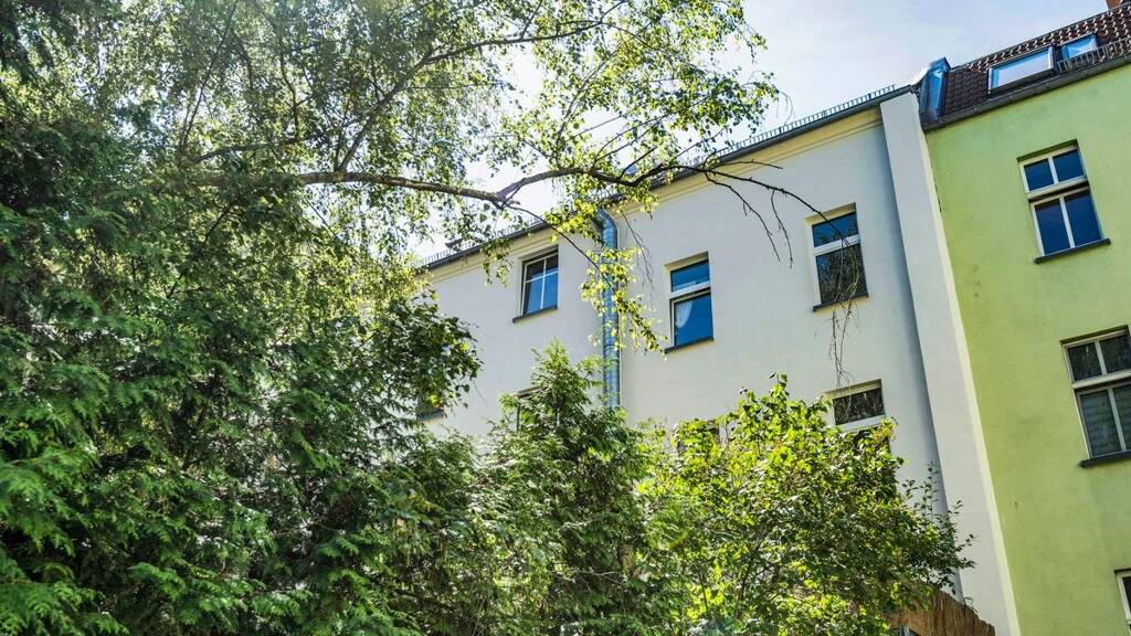 Historische Treppengeländer, dezente Ornamente und viel Charme zeichnen diesen Altbau aus. Er besteht aus einem straßenseitigen Vorderhaus und dem separaten Hinterhaus. Dazwischen sorgt der ruhige Gartenhof für eine angenehme Privatsphäre. Der schön gestaltete Hof verfügt über einen Fahrradstellplatz, immergrüne Gehölze und Sitzbänke. Der Altbau wurde in den 1990er Jahren modernisiert und das Dachgeschoss zu Wohnzwecken ausgebaut. Die sehr gut vermieteten 2-,3- und 5-Zimmer-Wohnungen erstrecken sich über ca. 45 m² bis 150 m² und verfügen teilweise über Balkone. Große Fenster sorgen für ein helles Wohnambiente.