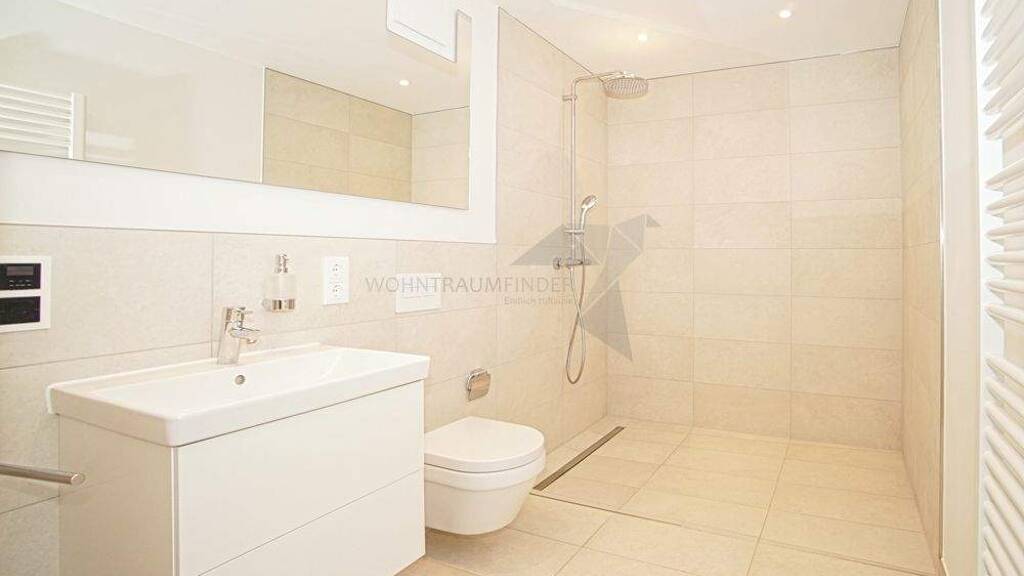 Ausstattung und Highlights: + Erstbezug nach Neubau mit energieeffizientem, barrierefreiem gehobenen Wohnstandard + offener Wohn-Schlafbereich + Küche mit EBK und mit Balkonzugang !! moderne Einbauküche bereits im Mietpreis enthalten !! + Balkon mit West-Nord-Ost-Ausrichtung + großes Bad mit bodentiefer Dusche, Handtuchheizkörper und Spiegel mit Beleuchtung + modern gefliestes Bad mit großformatigen Fliesen + Bad-Radio mit FM/DAB/Bluetooth + Bodenbeläge: Vinyl-Designbelag und Fliesen + Fußbodenheizung mit Einzelraumregler + hochwertige, glatte Wand und Deckenflächen (Q3-Qualität) mit farblichem Anstrich weiß + LED-Einbaustrahler in Bad, Küche und Flur + TV- und Netzwerkanschluss (Vodafone) + Klingel- und Video-Gegensprechanlage + Geothermie & Luft-Wärmepumpe mit PV-Anlage + Kellerabteil + Fahrradabstellraum + Personenaufzug