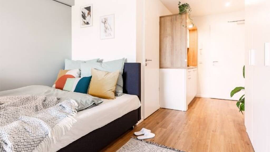 •Gemeinschaftsräume: Rezeptionslounge, Gemeinschaftsküche mit TV Lounge, Co-Working Space, Dachterrasse, Fahrradkeller und Waschsalon