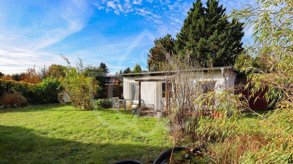 Auf dem Grundstück befindet sich ein abrissbedürftiger, ausgebauter Geräteschuppen in Massivbauweise mit einer Nutzfläche von ca. 41,29 m², aufgeteilt in zwei Zimmer sowie ein Duschbad. Ergänzt wird das bestehende Gebäude durch eine überdachte Terrasse mit ca. 26,32 m².