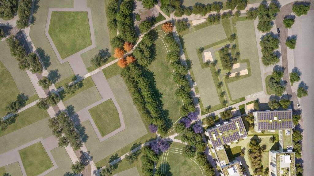 + GREEN + Grüne Plätze und Höfe sowie der weitläufige quartiersdurchfließende Park sorgen für entspannten Freiraum und bieten einladende Relax-Zonen und Treffpunkte.