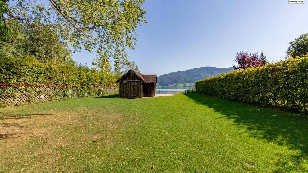 Diese ganz besondere Immobilie lässt Ihr Herz höherschlagen. Lediglich durch die Uferstraße vom Mondsee getrennt, bietet diese Liegenschaft einen traumhaften Seeblick, einen Privatbadeplatz. Abwechslung pur: Finden Sie auf der Seeseite einen herrlichen Blick auf das türkisblaue Wasser und lassen Sie sich auf der anderen Seite von der Grün-Oase mit viel Privatsphäre und dem eindrucksvollen Bergpanorama überraschen.