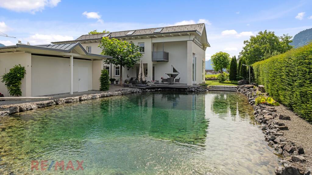 ** Großes Haus mit Pool und einem Traumgarten ** Offene und lichtdurchflutete Räume ** Hochwertige Küche ** Kamin ** Großes Badezimmer mit Dusche, Badewanne und WC ** Gästebadezimmer ** 2 Schlafzimmer mit Zugang zur Terrasse ** Wunderschöne Aussicht auf die Berge ** Sehr gute Lage, top Anbindung ** Nahversorger zu Fuß erreichbar ** Garagenplätze und ausreichend Außenparkplätze