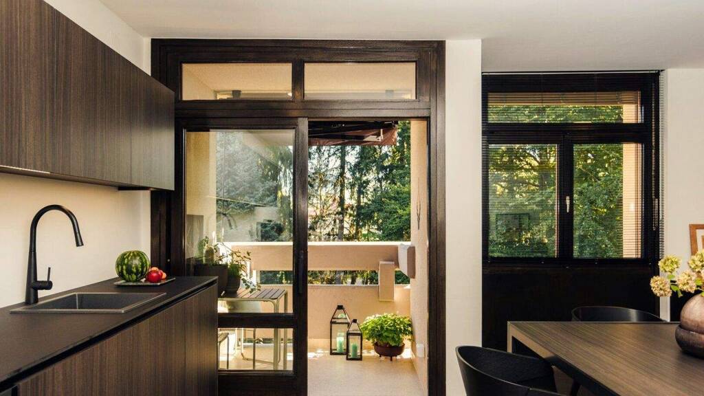 Der geschliffene Boden im modernen Industrial-Look verleiht der Einheit einen urbanen, professionellen Charakter und ist zugleich äußerst robust und pflegeleicht - optimal für den täglichen Bürobetrieb. Die Fußbodenheizung sorgt für ein angenehmes Raumklima, während maßgefertigte Tischlertüren mit verdeckten Beschlägen und dunklen Drückergarnituren das hochwertige Gesamtbild unterstreichen.
