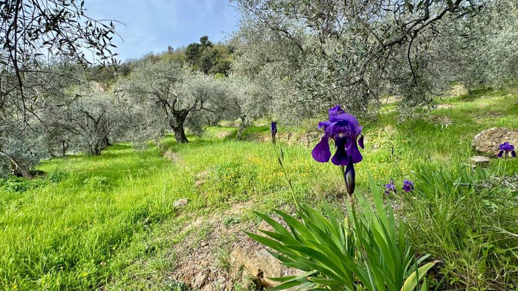 Seicht terrassiert und sonnenverwöhnt liegt diese außergewöhnliche Liegenschaft in den Hügeln von Dolceacqua. Von hier genießt man einen traumhaften Ausblick auf das Nervia-Tal, den mittelalterlichen Ort und das Meer.