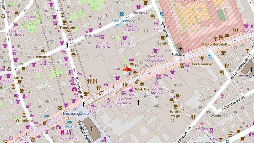 Die U3-Station Neubaugasse befindet sich direkt vor der Haustüre. Die Autobuslinien 13A + 14A liegen in Gehdistanz zum Gebäude. Die gesamte Infrastruktur der Mariahilfer Straße liegt vor dem Geschäftslokal.