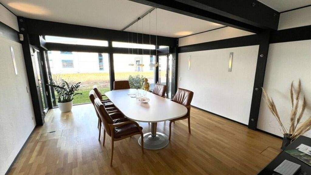 Das repräsentative und lichtdurchflutete Bürogebäude verfügt über eine Gesamtfläche von 248 m², welche sich auf ein Erd- und ein Obergeschoss verteilt. Der Zugang erfolgt über ein einladendes Foyer im Erdgeschoss. Über einen großzügigen Flurbereich erreicht man zwei helle, großräumige Büros für 6-8 Arbeitsplätze und einen repräsentativen Besprechungsraum, welcher ebenfalls auch als Büro genutzt werden könnte. Weiterhin stehen auf dieser Ebene zwei getrennte Mitarbeiter-WCs zur Verfügung.