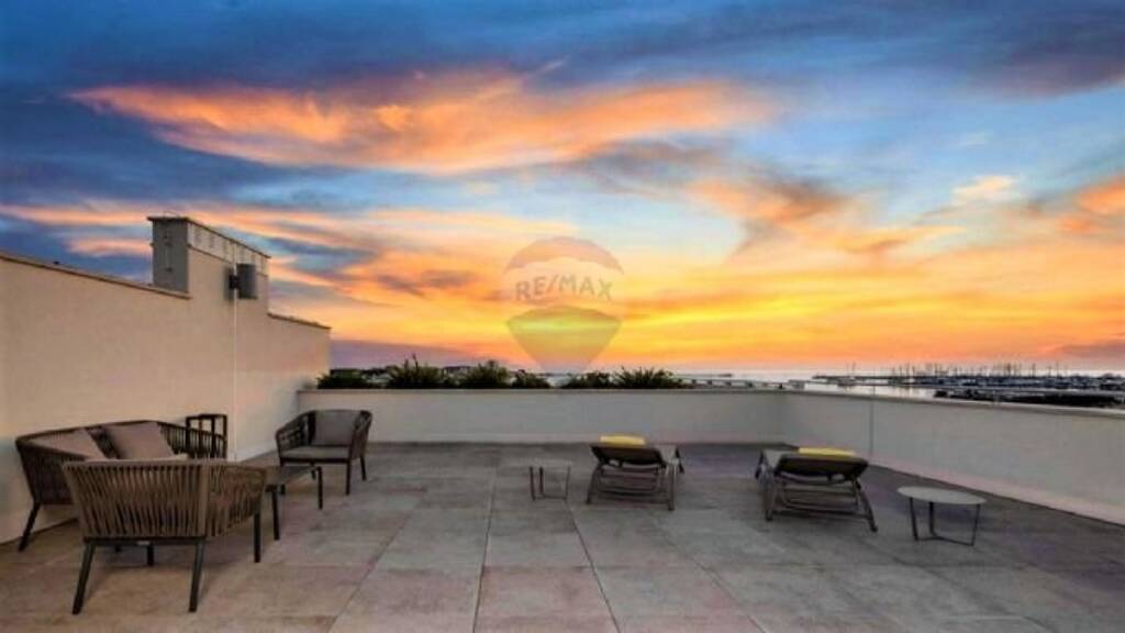 Die 106m2 große Terrasse ist teils überdacht und bietet einen fantastischen Panoramablick auf das Meer.