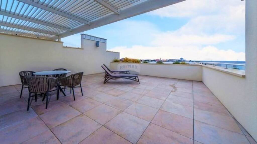 Diese tolle Penthouse Wohnung liegt in einem Resort und bietet einen tollen Ausblick auf Umag und das Meer.