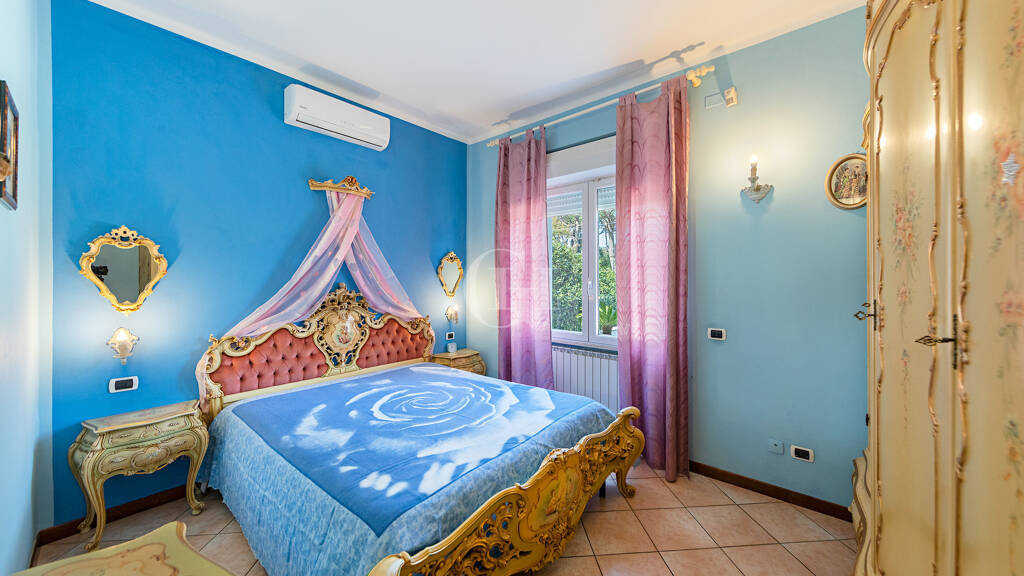 Eine der interessantesten Optionen für die individuelle Gestaltung der Villa betrifft das Erdgeschoss. Diese Ebene, die derzeit aus Wohnzimmer, Küche, drei Schlafzimmern und zwei Bädern besteht, könnte vollständig in einen großen und raffinierten Wohnbereich umgewandelt werden, so dass ein großzügiger Wohnbereich entsteht, der sich perfekt für diejenigen eignet, die offene und helle Räume wünschen. In dieser Konfiguration könnte der Schlafbereich im ersten Stock bleiben, was eine größere Privatsphäre und Trennung zwischen den Zimmern gewährleistet.