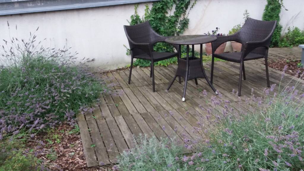 Helles, ruhiges Apartment mit Terrasse und kleinem Garten, der Lavendelduft erzeugt südfranzösisches Flair. Mit Rattanmöbeln neu eingerichtet. Komplette Küche mit E- Herd und Backrohr Mikrowelle, Kühlschrank, Kaffeemaschine und Wasserkocher. Geschirr vorhanden. Badezimmer mit Wannenbad und integrierter Dusche. Kosmetikspiegel, Föhn und Handtücher werden zur Verfügung gestellt. Vorraum mit Garderobenraum. Wohn-Schlafraum mit Rattanbett und Rattangarnitur zum Sitzen, Schreibtisch. Bettwäsche vorhanden. W-lan und Kabel TV (Flachbildschirm) stehen kostenlos zur Verfügung. Garten mit 2 Liegen und kleiner Sitzgruppe ausgestattet. Im Keller gibt es eine Waschküche mit Waschmaschine und Trockner. Perfekt ausgestattet für einen Kurzaufenthalt in Wien.