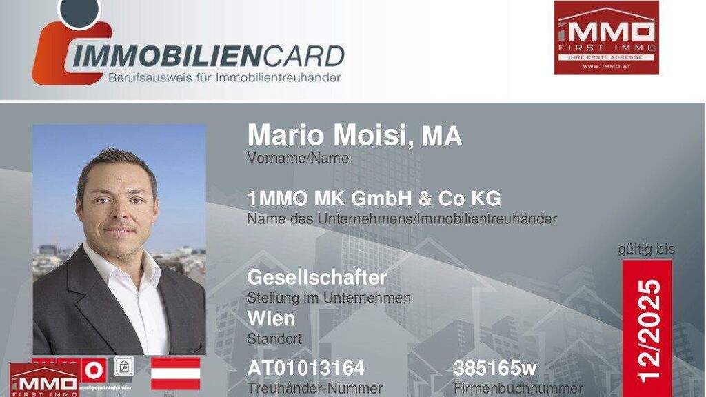 Für genauere Informationen, weitere Fragen und Besichtigungen steht Ihnen Herr Mario Moisi, MA, MBA jederzeit gerne unter +43 676 844 752 200 oder unter office@1mmo.at zur Verfügung!